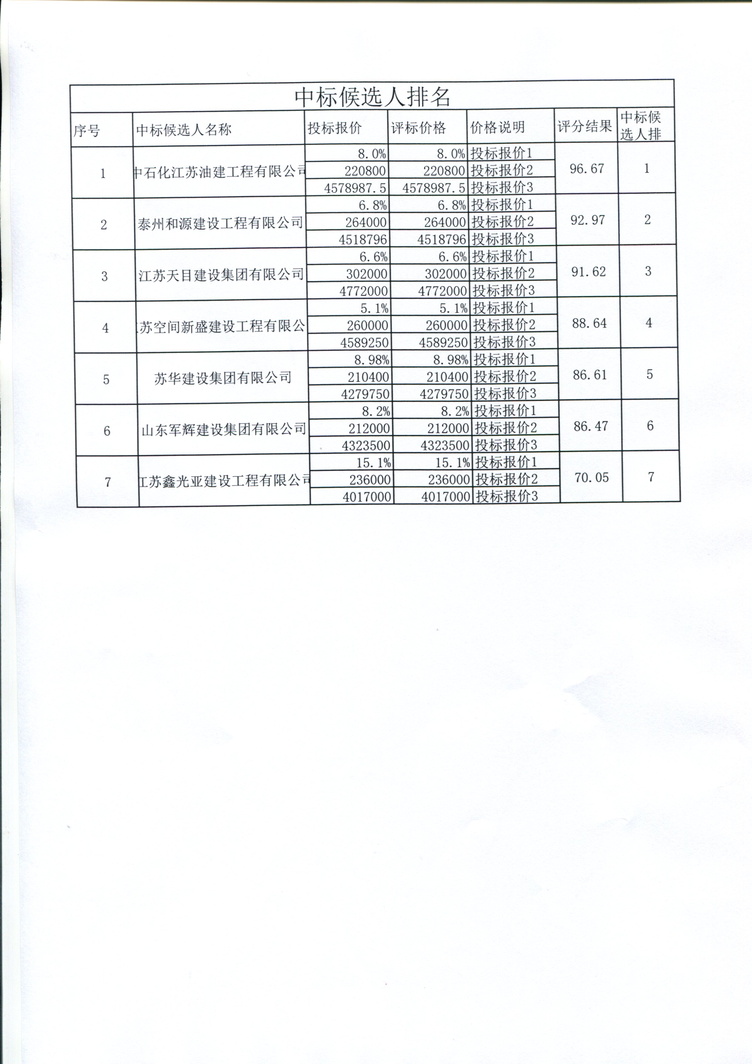 | 投标人名称 | 中石化江苏油建工程有限公司 | 泰州和源建设工程有限公司 | 江苏天目建设集团有限公司 |