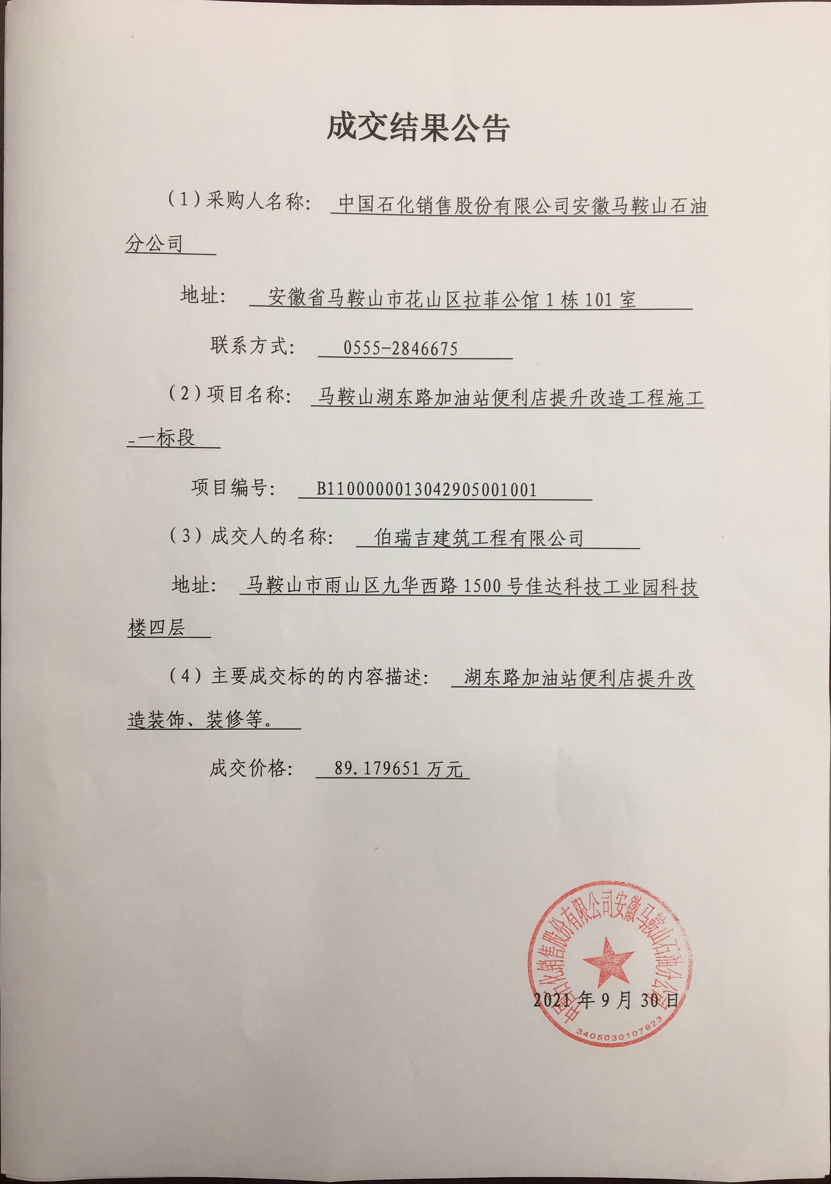 成交结果公告