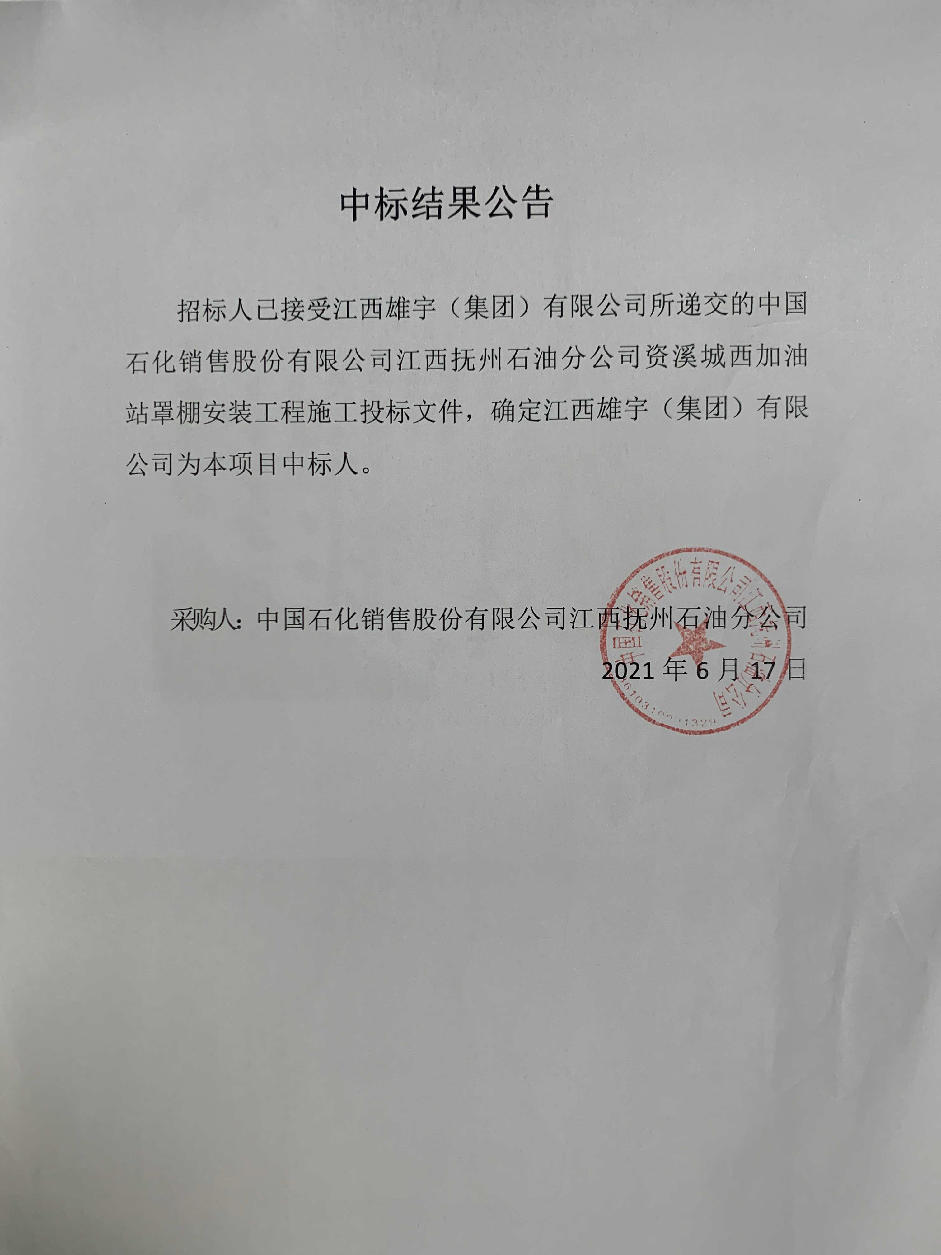 (2)项目名称: 中国石化销售股份有限公司江西抚州石油分公司资溪城西加油站罩棚安装工程工程施工_--
