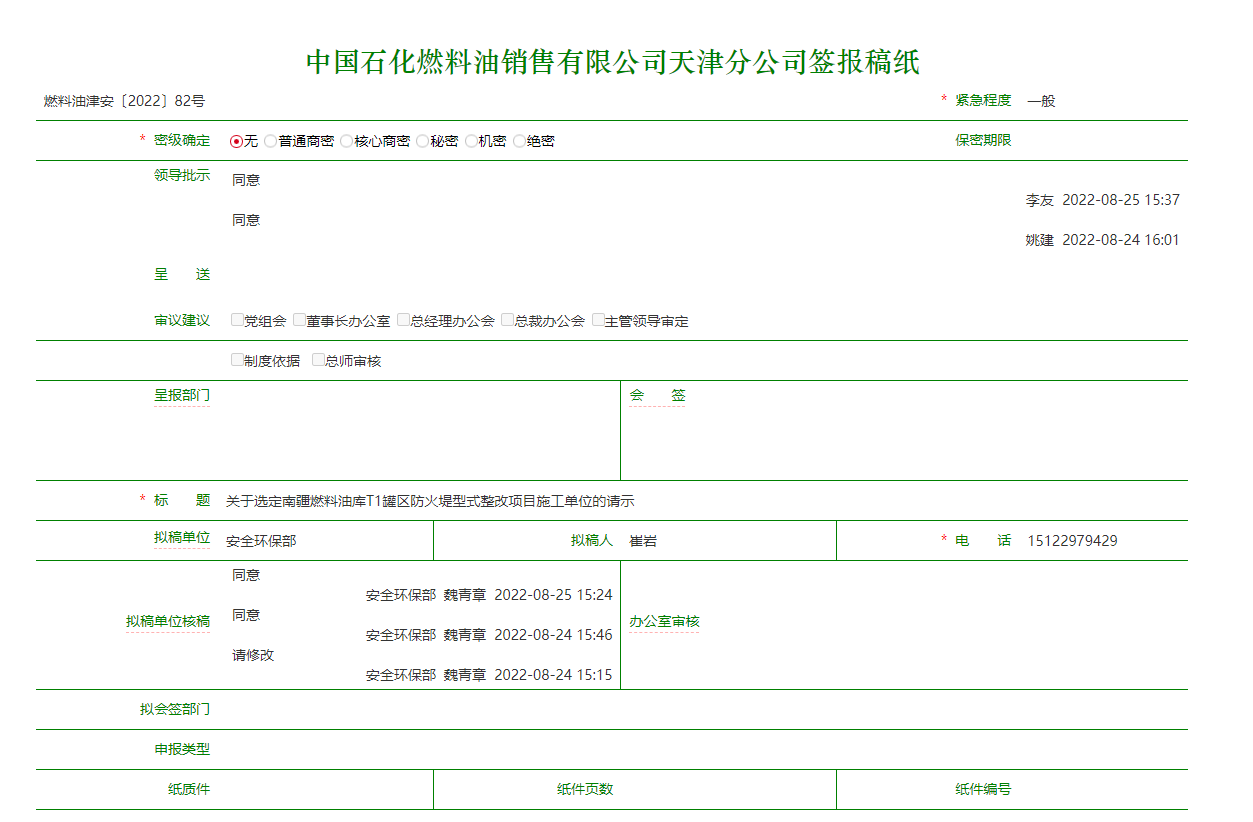 (1)采购人名称: 中国石化燃料油销售有限公司天津分公司