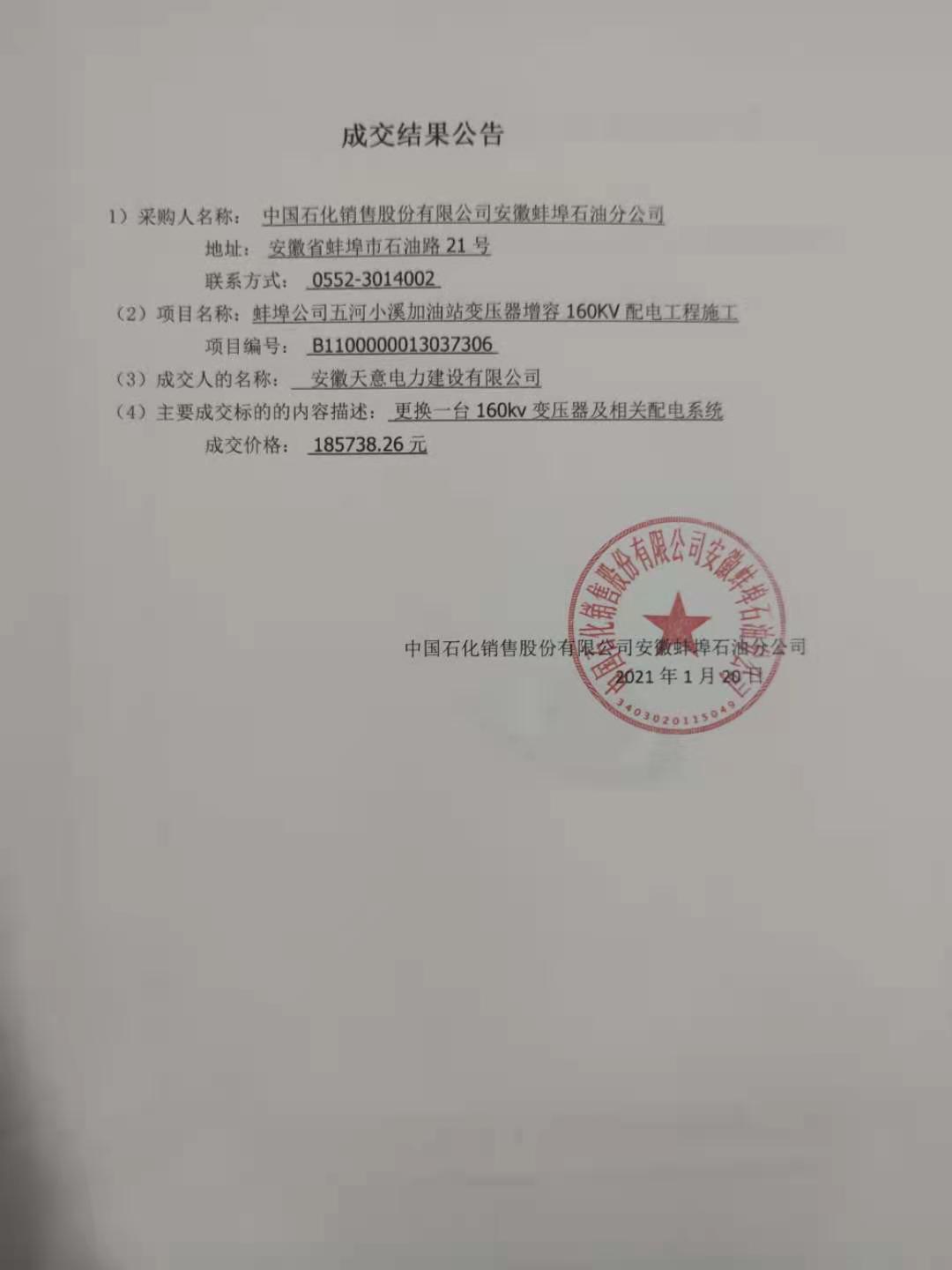 (3)成交人的名称: 安徽天意电力建设有限公司