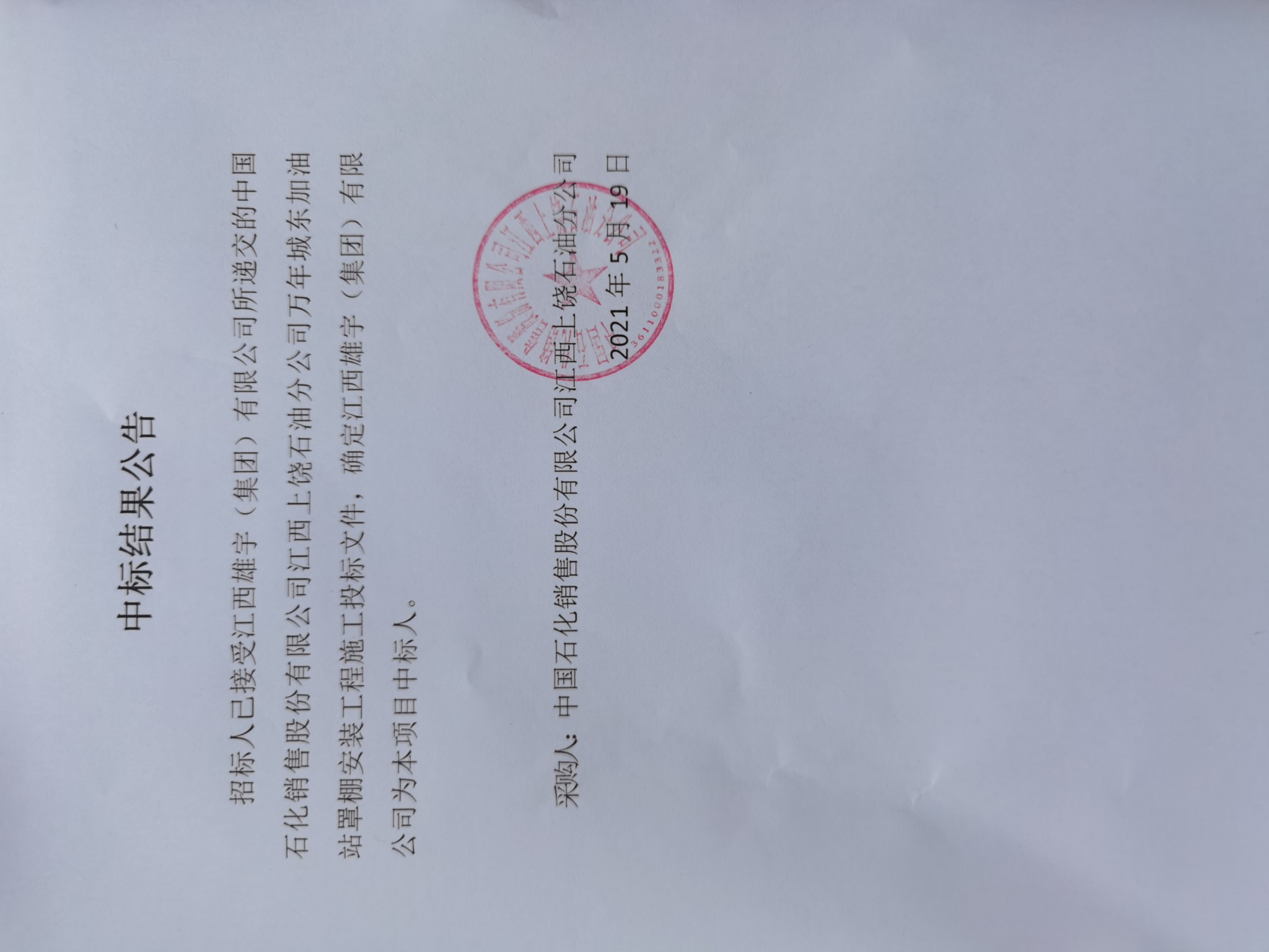 (2)项目名称: 中国石化销售股份有限公司江西上饶石油分公司万年城东加油站罩棚安装工程工程施工_一标段