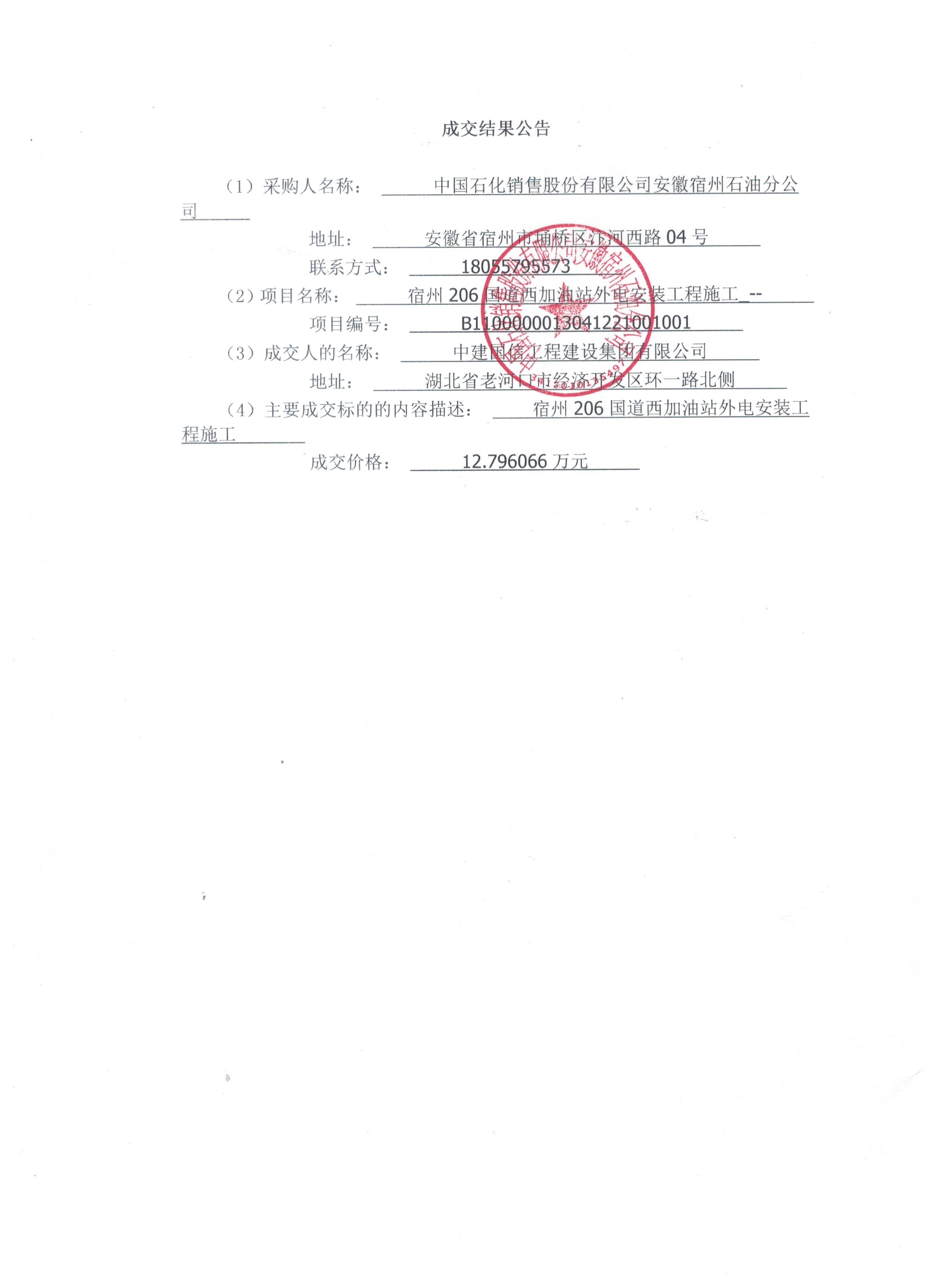 (2)项目名称: 宿州206国道西加油站外电安装工程施工_--