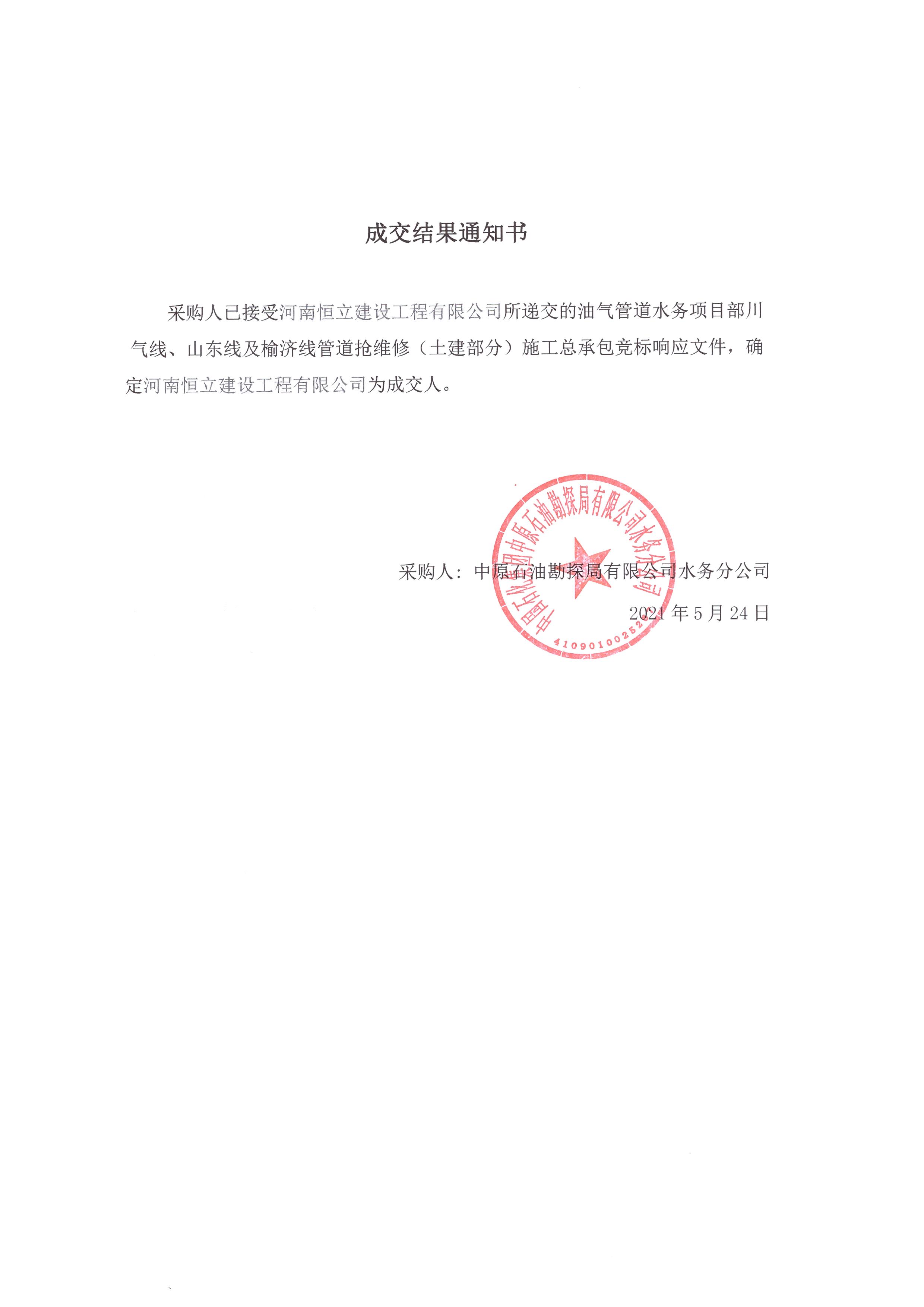 (3)成交人的名称: 河南恒立建设工程有限公司