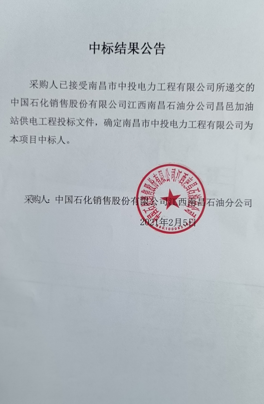 (2)项目名称: 中国石化销售股份有限公司江西南昌石油分公司昌邑加油站供电工程工程施工_--