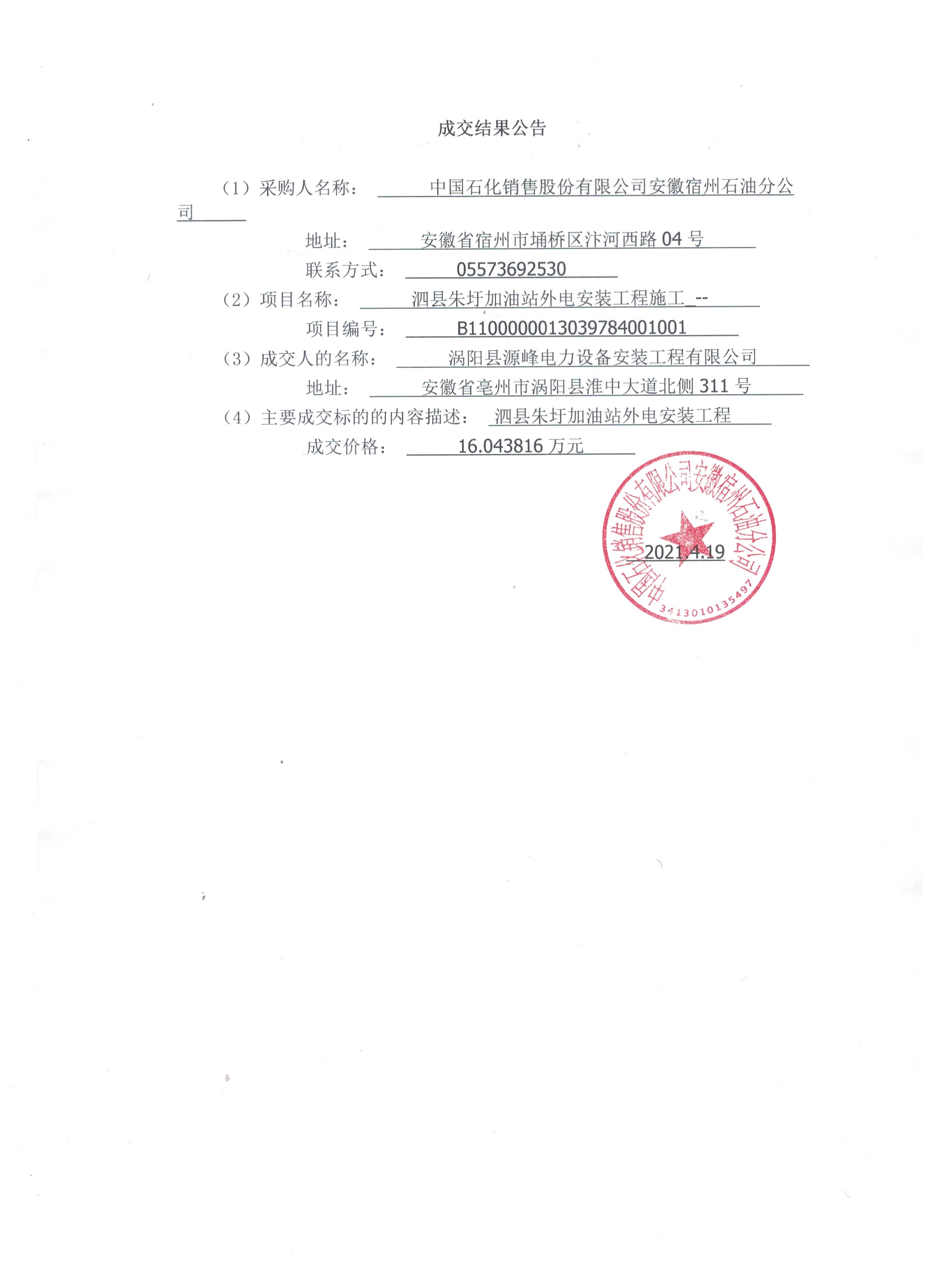 (3)成交人的名称: 涡阳县源峰电力设备安装工程有限公司