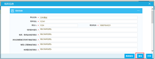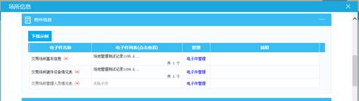 选中此条记录,点击按钮“操作”,进入场所信息编辑页面,维护好场所信息并上传相关电子件(注:可点击按钮“下载示例”参考相关电子件模板)。