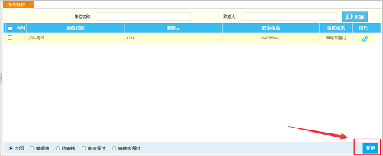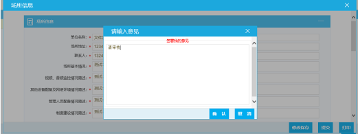 选择需审核记录,点击按钮“操作”,进入场所信息审核页面,审核完点击右下角按钮“通过”或“不通过”,并填写审核意见。