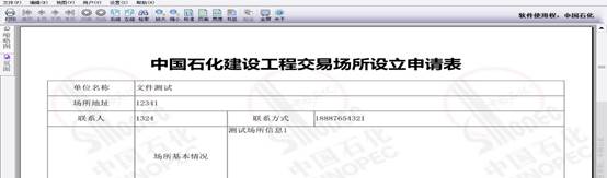 审核人可在线查看、导出、打印“中国石化建设工程交易场所设立申请表”。